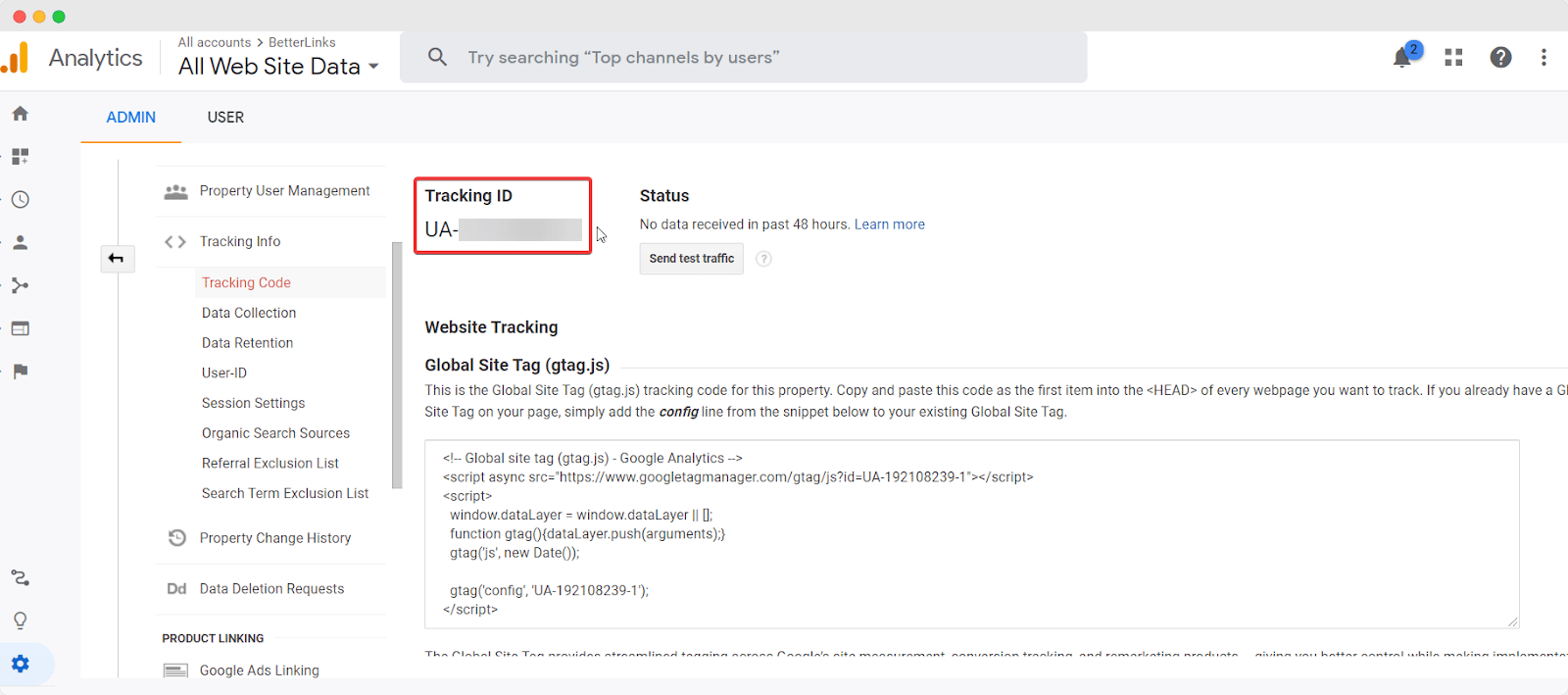 Step 3: Paste The Tracking ID In BetterLinks  #