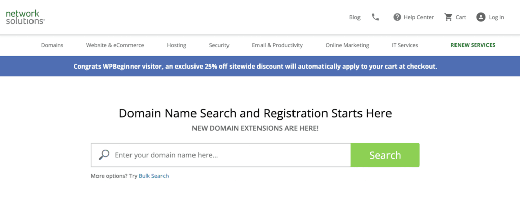 With over 7 million domains registered with them, Network Solutions is one of the largest domain name registrars in the world. With this service, you can register a huge selection of popular domain name extensions.