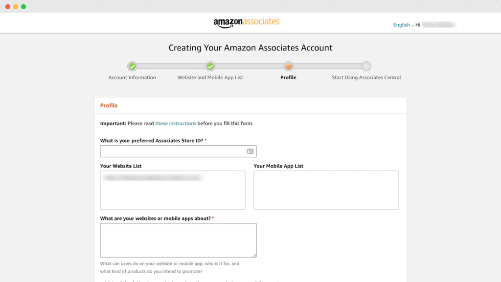 Next, you will need to provide additional information such as the address to which Amazon will send the commission payments, website and mobile apps list where you will be promoting the products with Amazon affiliate links, and more.